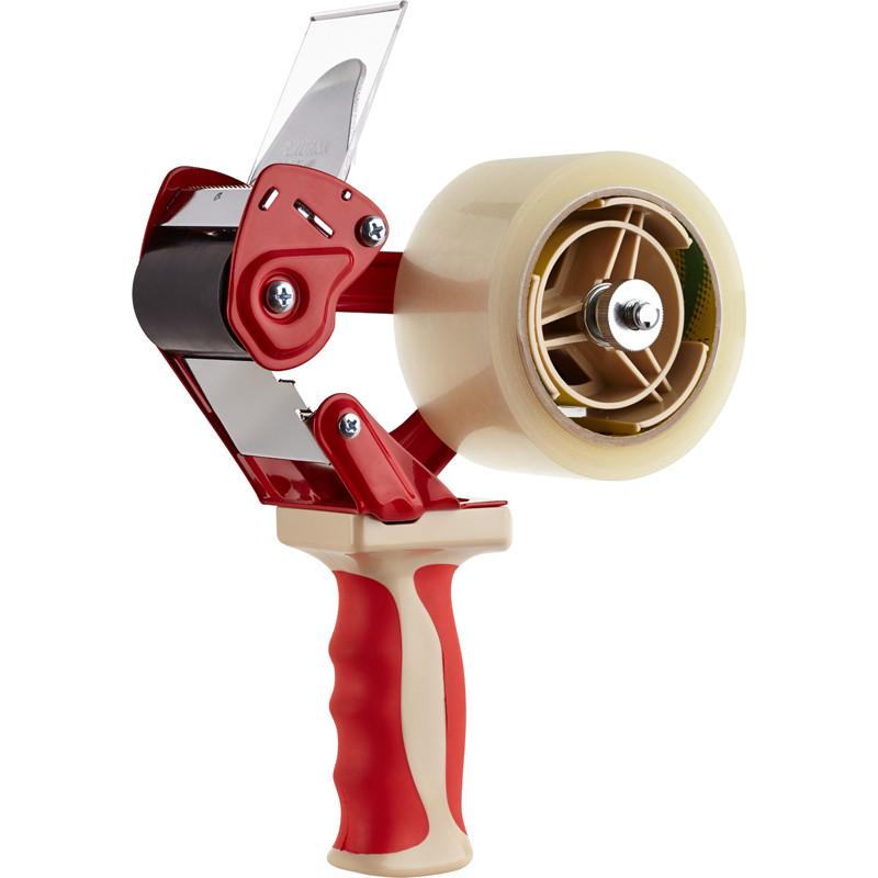 Диспенсер Attache Selection — это удобный и надежный инструмент для нанесения клейкой ленты. Облегчает работу с упаковкой производственным и складским работникам, незаменим в быту. Подходит для клейких лент шириной до 50 мм, длиной намотки до 200 м и внутренним диаметром втулки 76 мм. <br>Материал корпуса: металл. Основные узлы диспенсера изготовлены из металла, что увеличивает его прочность. Эргономичная прорезиненная рукоятка предотвращает скольжение рук при работе. Имеет механический нож, выдвигающийся только при нажатии на рычаг, обеспечивая безопасную и долговечную эксплуатацию. Ролик возле ножа прорезинен, что позволяет эффективно разгладить ленту перед приклеиванием. Оснащен металлическим пружинным регулятором усилия разматывания ленты. Прижимная пластина для непрерывного натяжения ленты также изготовлена из металла, обеспечивая долговечность и износостойкость. <br>Цвет — комбинированный (белый с бордовым).<br>Упаковочная клейкая лента в комплект не входит. <br>Количество диспенсеров в упаковке: 1 штука. <br>Количество упаковок в транспортном коробе: 24 штуки.<br>Снятие ручки не предусмотрено.