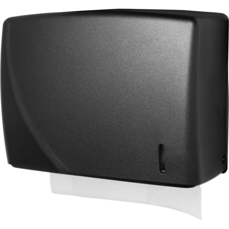 <b>Диспенсер для листовых полотенец пластиковый черный (код производителя R-1318B) </b> Диспенсер для полотенец лист сложения V черный идеально подходит для использования в местах со средней и высокой проходимостью, таких как туалетная комната в ресторане, офисе, торговом центре, аэропорту, железнодорожном вокзале. Диспенсер для полотенец имеет эргономичную форму и компактные размеры, отвечает всем требованиям гигиены. Изготовлен из высококачественного черного ABS-пластика. <b>Размер диспенсера (ВxШxГ): </b> 230×270×160 мм. <b>Материал: </b> пластик. <b>Комплект поставки: </b> диспенсер, ключ и саморезы для крепежа диспенсера.
