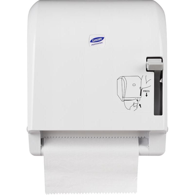 <b>Диспенсер для рулонных полотенец Luscan Professional (H12) пластиковый белый. </b> <br>Диспенсер для полотенец рулонных Luscan Professional предназначен для использования в общественных местах с высоким уровнем проходимости — офисных центрах, ресторанах и кафе, аэропортах. Рычаг подачи бумаги используется вместо колеса прокрутки. Изготовлен из белого ABS-пластика. Держатель устанавливается с помощью специальных креплений, входящих в комплект поставки. <br><b>Размер диспенсера (ВxШxГ): </b> 275×338×240 мм. <br><b>Материал:</b> пластик. <br><b>Комплект поставки: </b> диспенсер, ключ и саморезы для крепежа диспенсера.<br><b>Гарантийный срок:</b> 1 год.<br><br>Оттенок изделия может отличаться в зависимости от освещения и цветопередачи вашего устройства.