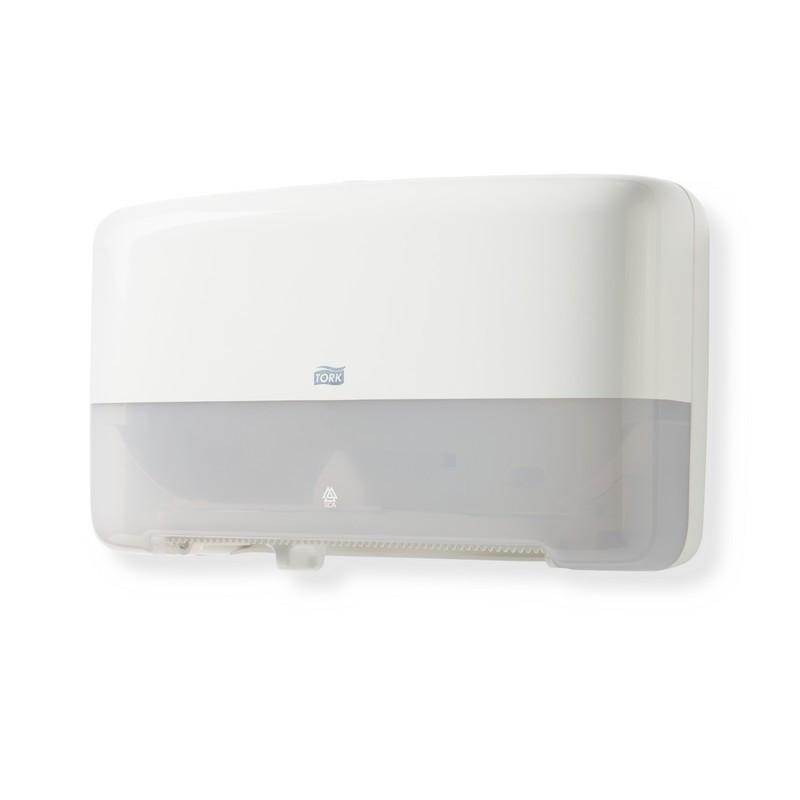 <b>Диспенсер для туалетной бумаги в мини-рулонах Торк (Tork) Elevation Т2 555500 пластиковый белый. </b> Предназначен для туалетных комнат средне-высокой проходимости. Вмещает 2 мини рулона туалетной бумаги Торк (Tork) Т2. Очень компактный. Емкость до 340 м. Вмещает запасной рулон. Доступ к запасному рулону открывается, после окончания основного рулона. 100% использование каждого рулона. Стопор для плавного вращения и предотвращения перерасхода.<b>Размер диспенсера (ВxШxГ): </b> 256×432×146 мм. <b>Материал: </b> пластик/металл. Гарантийный срок: 3 года. <br><br>Внимание! Элемент питания (или кабель USB, в зависимости от товара и от АГ) и крепеж не идут в комплекте.