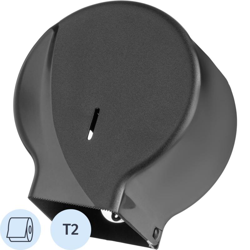 Диспенсер для туалетной бумаги в рулонах пластиковый черный (код производителя R-1310B) Диспенсер-мини для туалетной бумаги подходит для использования в местах со средней и высокой проходимостью, таких как туалетная комната в ресторане, офисе, торговом центре, аэропорту, железнодорожном вокзале. Диспенсер имеет эргономичную форму и компактные размеры. Система Tork - Т2. Размер диспенсера (ВxШxГ): 230x190x125 мм. Материал: высококачественный ABS-пластик. Комплект поставки: диспенсер, ключ, саморезы для крепежа диспенсера. Ключ встроен к задней стенке диспенсера, его необходимо извлечь для эксплуатации.