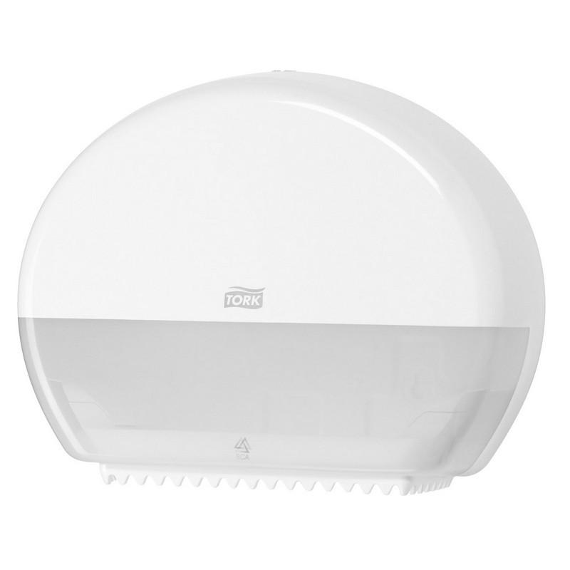 <b>Диспенсер для туалетной бумаги в мини-рулонах Торк (Tork) Elevation Т2 555000 пластиковый белый.</b> Держатель изготовлен из ударопрочного пластика белого цвета. Функция Stub Roll позволяет сэкономить до 35 м бумаги. Снабжен специальными зубчиками, которые подходят для отрыва полотна как с перфорацией, так и без нее. Открывается двумя альтернативными способами: ключом и кнопкой. Вмещает рулон длиной до 200 метров. <b>Размеры держателя (ВхШхГ): </b> 27,5×34,5×13,2 см. <b>Материал: </b>пластик/металл. Гарантийный срок: 3 года. <br><br>Внимание! Элемент питания и крепеж не идут в комплекте.