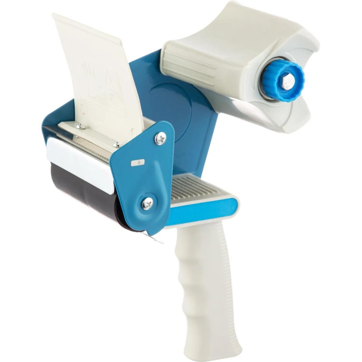 Корпус изготовлен из АБС-пластика и железа, сочетая в себе лёгкость и прочность. Ручка изготовлена из инженерного АБС-пластика, что обеспечивает удобный захват и предотвращает скольжение. Диспенсер сине-белого цвета, вес всего 0,56 кг. Разработан для аппликаторов с металлическим корпусом, обеспечивает длительный срок службы и стабильную работу. Максимальная длина намотки клейкой ленты для работы с диспенсером — 200 метров.<br><br>Упаковочная лента в комплект не входит.<br><br>Количество диспенсеров в упаковке — 1 штука.<br>Количество диспенсеров в транспортной упаковке — 24 штуки.
