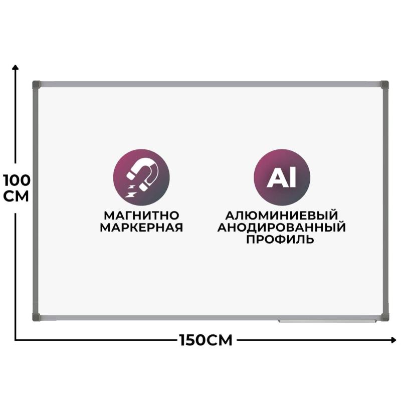 Доска магнитно-маркерная BoardSYS 100×150 см односекционная с эмалевым покрытием (полочка для маркеров)<br><br>Магнитно-маркерная доска предназначена для настенного монтажа. Рабочая поверхность белая, что позволяет использовать её для письма маркерами для магнитно-маркерных досок и прикреплять информацию с помощью магнитов. Для удаления записей следует использовать специальные губки-стиратели в комбинации с чистящим спреем для более тщательной очистки.<br><br>Доска комплектуется полочкой для маркеров и крепежами для монтажа на стену. Рама выполнена из фигурного алюминиевого профиля шириной 20 мм, скреплённого пластиковыми уголками, что обеспечивает прочность и надёжность конструкции. Размер рабочей поверхности составляет 100×150 см. В комплект входят 4 шурупа, 4 дюбеля и комплект декоративных заглушек.<br><br>Для удаления плёнки потяните за верхний свободный угол, плёнка легко отойдёт от рабочей поверхности. При необходимости проведите вдоль рамы канцелярским ножом.