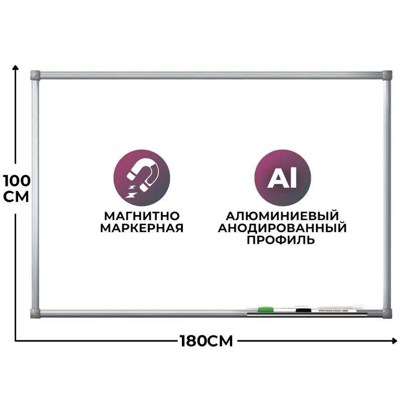 Доска магнитно-маркерная Комус Premium 100×180 см односекционная с эмалевым покрытием (антибликовая поверхность, полочка для маркеров)<br><br>Магнитно-маркерная доска предназначена для использования в офисах, учебных заведениях и других помещениях. Эмалевая поверхность обеспечивает превосходную стираемость и долговечность, а супергладкая структура минимизирует искажение от отражаемого света, обеспечивая комфортную работу при разных условиях освещения.<br><br>Доска предназначена для использования маркеров для сухого стирания и магнитов для крепления сообщений. В комплект входят крепежи для монтажа на стену и полочка для маркеров. Скрытое крепление осуществляется в четырёх точках, что гарантирует надёжную фиксацию доски. Размер рабочей поверхности составляет 98×178 см, а премиум профиль шириной 20 мм придаёт конструкции доски повышенную прочность и надёжность.<br><br>Соблюдение правил ухода и эксплуатации способно обеспечить срок службы эмалевой рабочей поверхности магнитно—маркерной доски более 25 лет. В комплект входят дюбели, шурупы, полочка для маркеров и инструкция.<br><br>Для удаления плёнки потяните за верхний свободный угол, плёнка легко отойдёт от рабочей поверхности. При необходимости проведите вдоль рамы канцелярским ножом.