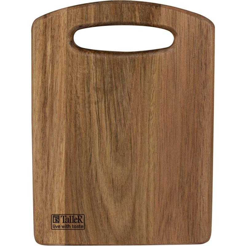 Доска разделочная TalleR деревянная 33×24 см.<br>Размер доски: 33×24×1.5 см. Доска выполнена из благородной древесины акации, одной из самых твердых пород дерева. Легко использовать и ухаживать. Не тупит ножи, не впитывает запахи. Обращаем внимание, что рисунок каждой доски индивидуален (может отличаться от фотографии в карточке товара), так как изделие выполнено из натурального материала. Древесина акации может быть как темных, так и светлых оттенков, и это никак не сказывается на эксплуатационных характеристиках разделочной доски. <br>Рекомендуется ручная мойка.