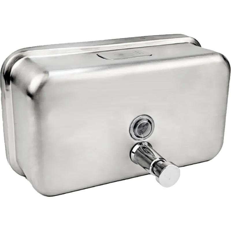 Дозатор (диспенсер) для жидкого мыла Luscan Professional нержавеющая сталь серебристый 1.2 л<br><br>Горизонтальный дозатор для жидкого мыла изготовлен из нержавеющей стали № 304 толщиной 0,8 мм в цвете хром с матовой поверхностью<br>Матовый корпус обтекаемой формы изготовлен без краёв и граней для безопасного использования. Имеет хромированную латунную кнопку и антивандальное поликарбонатное смотровое окно для контроля уровня жидкости.<br>Дозатор имеет объем 1200 мл и отлично подходит для мест с интенсивной проходимостью. <br>Наливной дозатор — предназначен для наполнения емкости неограниченное количество раз, когда расходный материал подходит к концу. Наливной тип является наиболее экологичным.<br>К преимуществам изделия можно отнести прочность и экономичное расходование мыла, устойчивость к образованию ржавчины.<br><br>Для стационарного крепления к стене.<br>Размеры ДхШхВ: 185×100×65 мм.<br>Материал: нержавеющая сталь № 304 .<br>Цвет: серебристый.<br>Объём картриджа: 1200 мл.<br>Дозировка: 0,5-1,0 мл.<br>Количество изделий в упаковке: 1 шт.<br>Комплект поставки: дозатор, комплект креплений (саморезы и дюбеля).<br>Предназначен для использования только с жидким мылом.<br>Гарантийный срок: 1 год.