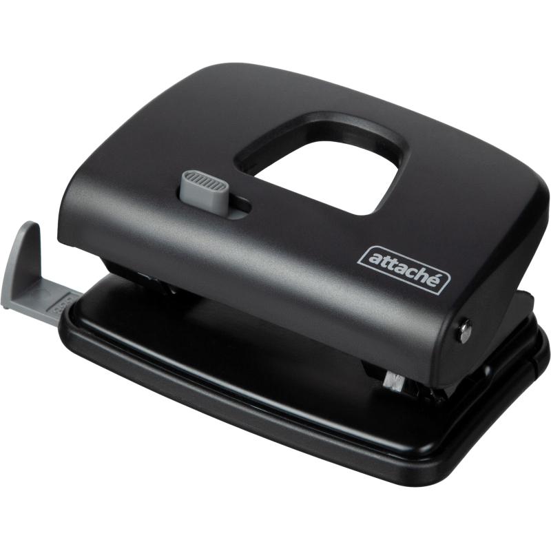 Дырокол Attache Perform — это важный и необходимый предмет для комфортной работы в офисе и дома. Дырокол позволяет аккуратно перфорировать документы, чтобы подшить их в папку с двумя и четырьмя кольцами или в скоросшиватель. Классический дизайн и черный цвет пластикового корпуса отлично впишутся в офисный интерьер. Одним нажатием возможно пробить отверстия в документе толщиной до 25 листов плотностью 80 г/кв.м. Дырокол делает два отверстия диаметром 6.0 мм, расстояние между отверстиями — 80 мм. Пробойники дырокола изготовлены из высококачественного металла, пластика и полиэтилена что позволит им прослужить дыроколу долго и без сложностей пробивать листы бумаги. Удобный контейнер для конфетти легко открывается и закрывается, исключая его рассыпание. Наличие линейки с делениями позволяет зафиксировать бумагу на нужном расстоянии и пробить отвестия в бумаге в соответствии с ее размером. Удобно работать с форматами А4, А6, А8. Дырокол имеет кнопку фиксации в закрытом виде, что позволяет экономить рабочего пространство.