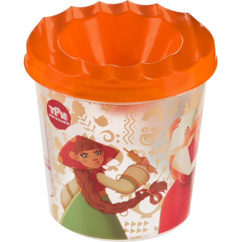 Емкость для воды (стакан-непроливайка) Комус 175 мл крышка оранжевая корпус с рисунком с отметкой безопасного уровня с углублениями для размещения кисточек<br><br>Пластиковый стакан-непроливайка идеально подойдет как школьникам на уроках рисования, так и маленьким художникам дома и в детском саду. <br>Крышка с отверстием в центре имеет желобки для кистей.<br>При заполнении стакана до указанной линии вода не прольется при случайном переворачивании.<br>Корпус с дизайном. <br>Объем: 175 мл.