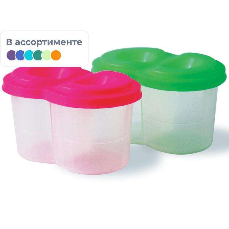 Емкость для воды (стакан-непроливайка) Луч двойной 175 мл корпус прозрачный с отметкой безопасного уровня <br><br>Подходит для использования при рисовании красками. <br>Плотно прилегающая к стенкам крышка препятствует выливанию воды на рабочую поверхность. Специальная линия указывает на максимально возможный уровень наполнения водой. Стильное сочетание матовой и глянцевой поверхности.<br>Изготавливается из полипропилена — экологичного, легкого, пластичного материала.<br>Полный объем стакана до верха — 175×2 мл. <br>Объем, при котором не выливается вода — 70×2 мл.