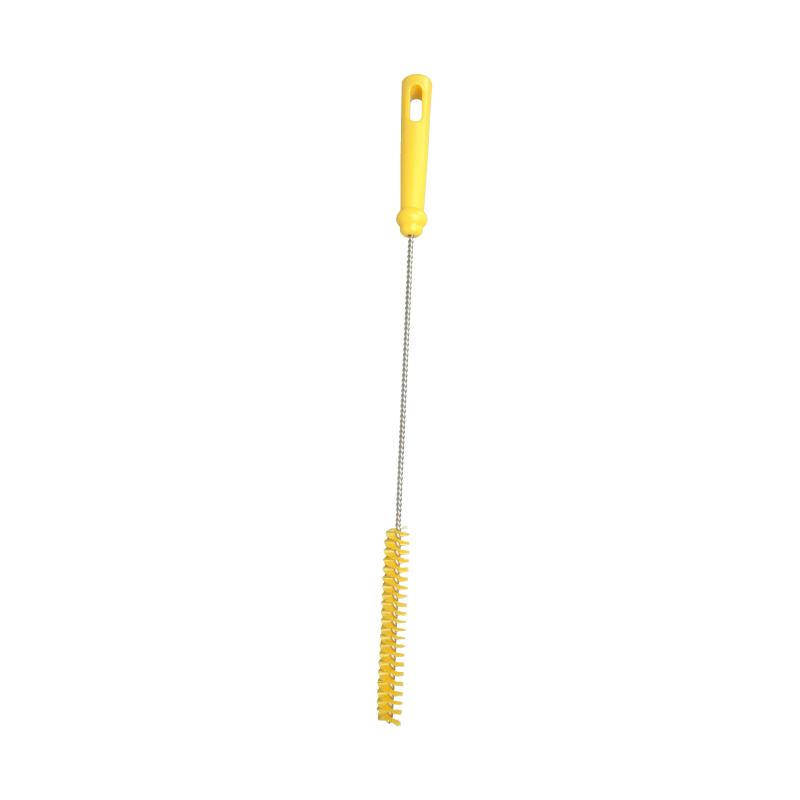 Ёршик для очистки труб/бутылок FBK средней жёсткости 500×20 мм жёлтый <br><br>Ёршик для чистки труб FBK 500×20 мм жёлтый предназначен для мойки труб, бутылок, технологических отверстий и труднодоступных мест. Он оснащён нержавеющим стержнем и пластиковой ручкой. Щетина средней жёсткости удаляет загрязнения с различных поверхностей. Ёршик имеет сквозное отверстие для подвешивания, что облегчает хранение.<br><br>Ёршик выполнен из синтетической щетины полиэстера РBT, нержавеющей стали и полипропилена. Размер рабочей части составляет 150×20 мм, толщина щетины — 0.30 мм. Общая длина ёршика — 500 мм. Он выдерживает температуры от −20 °С до +134 °С и допускает автоклавирование при температуре 134 °С.<br><br>Ёршик соответствует требованиям ХАССП и предназначен для профессионального использования. Жёлтый цвет и компактная конструкция обеспечивают удобство в работе.<br><br>Внешний вид и/или характеристики товара могут быть изменены производителем в соответствии с производственным процессом.