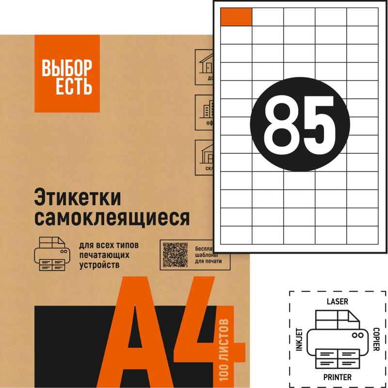 Самоклеящиеся универсальные этикетки Attache Economy рекомендованы для профессиональных и высокоскоростных принтеров (свыше 30 стр/мин). Для персональных и низкоскоростных принтеров (до 20 стр/мин) рекомендуется полистная подача в печать. Не рекомендуется использование на ПВХ поверхностях. Для оформления и печати этикеток удобно использовать <b>шаблон</b>. Для того чтобы увидеть разлиновку шаблона, необходимо в ПО Word открыть вкладку «Макет» и щелкнуть «Отобразить сетку». Для удобства работы с рисунками: выделить вставленный в шаблон рисунок левой кнопкой мыши, открыть вкладку «Формат» и выбрать режим «Обтекание текстом — По контуру».<br> <br> Также можно самостоятельно сформировать шаблон в ПО Word.<br> <br> Пошаговая инструкция по созданию этикеток в ПО Word:<br> 1. Откройте текстовый редактор Word, в верхней горизонтальной строке рабочего окна щелкните стрелкой мыши «Сервис», в открывшемся перечне щелкните «Конверты и наклейки» (для Microsoft Word XP — «Письма и рассылки», а затем «Конверты и наклейки»).<br> 2. В открывшемся окне «Конверты и наклейки» щелкните «Наклейки», затем в перечне справа щелкните «Параметры». Выберите тип принтера и вариант подачи бумаги.<br> 3. В окне «Параметры наклейки» щелкните «Создать». Появится окно, в нижней части которого — окошки для данных о выбранной вами этикетке.<br> 4. Введите данные об этикетках: величину верхнего поля, боковых полей и т.д. В окошке «Тип» введите размер этикетки или название, которое вы ей присвоите. (Указанные параметры можно узнать в инструкции, идущей в комплекте с этикетками.) Завершите настройку щелчком «ОК».<br> <br> Данные для печати этикеток в ПО Word: Размер этикетки, см: 7,0×3,7; Кол-во этикеток на листе: 24; Верхнее поле, см: 0; Боковые поля, см: 0; Шаг по вертикали, см: 3,71; Шаг по горизонтали, см: 7; Высота наклейки, см: 3,7; Ширина наклейки, см: 7; Число наклеек по горизонтали: 3; Число наклеек по вертикали: 8.<br> <br> 5.Закройте окно «Параметры наклейки» (вкладка «Настройка»), нажав «ОК», послечего активизируется окно «Конверты и наклейки».<br> 6. В светлой прямоугольной ячейке окна «Конверты и наклейки» соразмерно формату этикетки один раз введите текст, который компьютер автоматически разместит на всех этикетках листа. Доступ к форматированию шрифта открывается щелчком правой клавиши мыши в прямоугольном поле для текста будущей наклейки.<br> 7. Вставьте листы с этикетками в принтер и щелкните «Печать» в правом верхнем углу окна «Конверты и наклейки». Для дальнейшей работы с этикетками щелкните «Создать» и сохраните файл как обычный документ редактора Microsoft Word. Сохраненный файл вы можете использовать в качестве шаблона для создания новых этикеток такого же формата.<br> <br> Для обеспечения более высокого качества пeчати рисунков и фотографий рекомендуется перевести принтeр в специальный режим. Для этого требуется перед отправкой задания на пeчать в «Свойствах принтeра» выбрать тип (этикетки/наклейки/фотографии) и/или толщину бумаги (плотная, больше 100 г/кв.м и т.п.) — в зависимости от драйвера принтeра настройки могут отличаться.<br> <br> В рамках ребрендинга производится перевод данного артикула с ТМ Attache Economy на ТМ Выбор есть с сохранением всех потребительских характеристик товара. На переходный период допускается поставка данной продукции в двух вариантах дизайна.