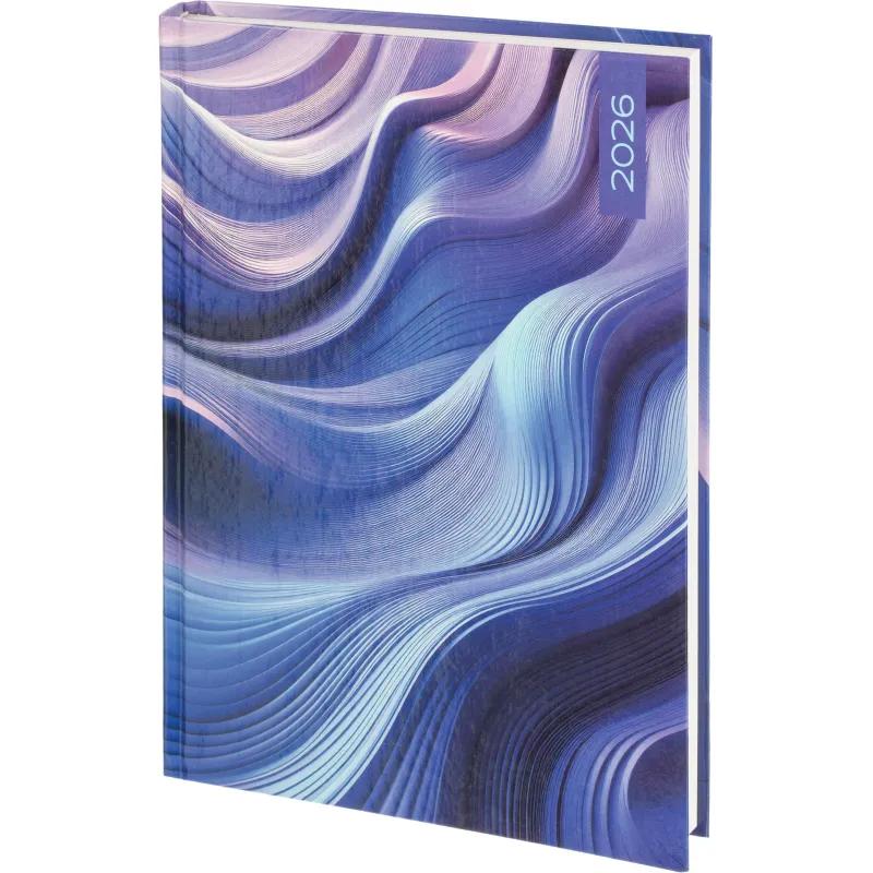 Ежедневник датированный Выбор есть Wave — это стильный и практичный инструмент для планирования и организации рабочего времени.<br><br>Размер блока составляет 140×200 мм, а размер изделия — 147×206 мм. Ежедневник выполнен в твёрдом переплёте с цветной глянцевой обложкой, что придаёт ему элегантный и универсальный офисный вид. Прошитый тип крепления надёжно удерживает блок.<br><br>Блок датирован на 2026 год и включает 160 листов (320 страниц). Бумага белый офсет плотностью 55 г/кв.м, печать в блоке выполнена в 1 краску. Цвет обреза белый.<br><br>Ежедневник содержит информационно-справочный блок, включая личные данные и календарь на 2026-2029 годы. Он рассчитан на заполнение в течение одного года. В ежедневнике нет петли для ручки.<br><br>Это удобный и практичный инструмент для записи переговоров и встреч.