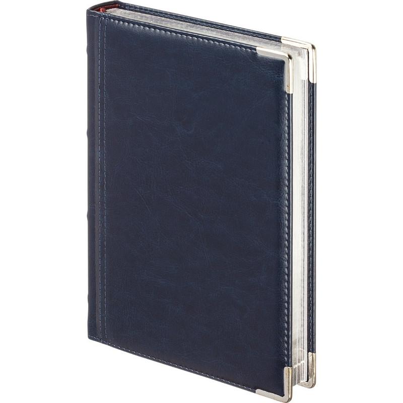 Ежедневник полудатированный Bruno Visconti Boss, выполненный из искусственной кожи высокого качества, формат A5+, содержит 208 листов (416 страниц). Обложка ежедневника имеет темно-синий цвет с серебристым обрезом, что подчёркивает элегантный и деловой стиль. Аккуратная прострочка по периметру добавляет изделию солидности.<br><br>Внутренний блок включает 208 листов белой офсетной бумаги плотностью 70 г/кв.м. Листы оформлены в линейку с печатью в 2 краски. Перфорация уголков листа и ляссе помогают быстро находить нужные записи и делают использование ежедневника удобным.<br><br>Размер изделия составляет 14.5×21.7 см. Ежедневник имеет вертикальную ориентацию и поставляется в подарочной упаковке. Также возможна персонализация, включая нанесение логотипа.