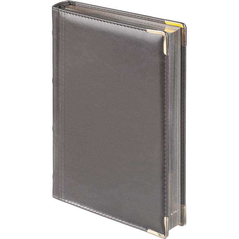 Ежедневник полудатированный Bruno Visconti Boss, выполненный из искусственной кожи высокого качества, формат A5+, содержит 208 листов (416 страниц). Обложка ежедневника имеет серый цвет с золотистым обрезом, что подчёркивает стиль и строгость изделия. Аккуратная прострочка по периметру добавляет солидности.<br><br>Внутренний блок включает 208 листов белой офсетной бумаги плотностью 70 г/кв.м. Листы оформлены в линейку с печатью в 2 краски. Перфорация уголков листа и ляссе помогают быстро находить нужные записи и делают использование ежедневника удобным.<br><br>Размер изделия составляет 14.5×21.7 см. Ежедневник имеет вертикальную ориентацию и поставляется в подарочной упаковке. Также возможна персонализация, включая нанесение логотипа.