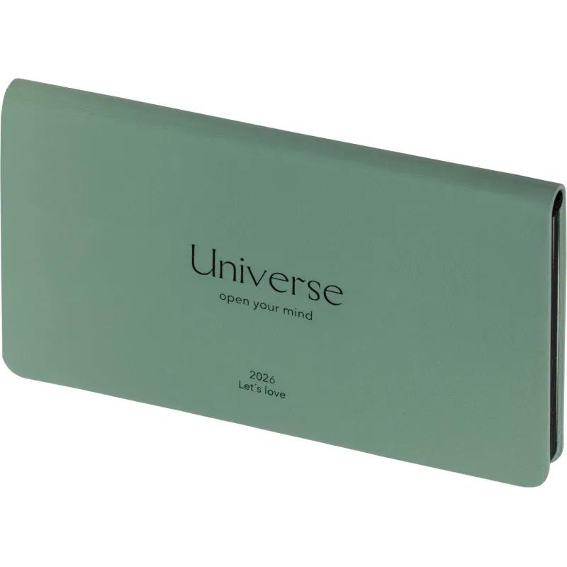 Еженедельник датированный InFolio Universe — это поэма, посвящённая нашей уникальной Вселенной. Минималистичный дизайн обложек с эстетичной типографикой подарит вдохновение для изучения мира снаружи и внутри, ведь каждый из нас — целая Вселенная со своими мыслями, чувствами и уникальным опытом.<br><br>Карманный датированный еженедельник на 2026 год размером 160×90 мм будет не только компактным незаменимым помощником в ведении дел, но и стильным аксессуаром, отражающим индивидуальность владельца. Мягкая обложка из приятной искусственной кожи с печатью шелкографией имеет скруглённые уголки, которые не позволят порвать подкладку сумки. Благодаря крепкому ниткошвейному скреплению еженедельник верно прослужит весь год.<br><br>Датированный внутренний блок в линейку на 64 листа (128 страниц) из высококачественной бумаги цвета слоновой кости плотностью 70 г/кв.м и окрашенным обрезом. Информационный блок еженедельника включает в себя: календари на 2026-2027 гг., развороты с планированием и важными датами, развороты для заметок в начале и в конце блока.<br><br>В еженедельнике также имеется одна удобная атласная закладка, которая поможет быстро найти нужный разворот.
