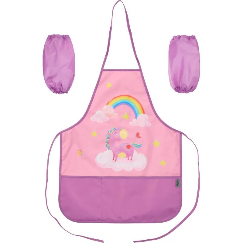 Фартук для труда и занятий творчеством Комус Класс 'Волшебный единорог'. Удобный фартук имеет два кармана и нарукавники. Непромокаемая ткань защищает одежду ребенка. Размер изделия - 490x390 мм.<br><br><b>В рамках ребрендинга производится перевод данного артикула с ТМ № 1School на ТМ Комус Класс с сохранением всех потребительских характеристик товара. На переходный период допускается поставка данной продукции в двух вариантах дизайна.</b>
