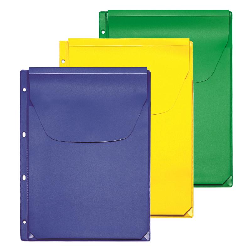 Папка файл-вкладыш расширяющийся с клапаном под А4 формат. Габаритные размеры 243×310 мм. Расширение до 2,5 см (250 листов). Стандартная перфорация позволяет подшивать файл-вкладыш в любые папки-регистраторы. Выполнен из плотного ПВХ (300мкм), который надежно защищает документы от повреждений. Упаковка — полиэтиленовый пакет с липким слоем. В упаковке три файла-вкладыша разных цветов (синий, зеленый и желтый).