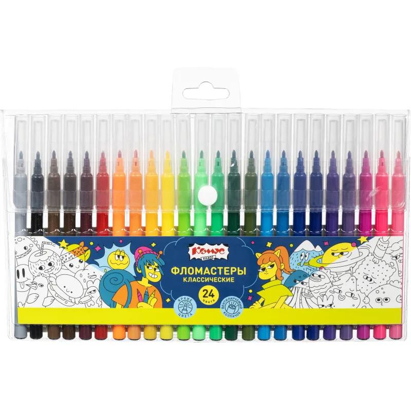 Фломастеры Комус Класс Максики 24 цвета с вентилируемыми колпачками смываемые<br><br>Набор из 24 фломастеров с водной основой, предназначенный для детей от 3 лет. Эти фломастеры обладают толщиной линии письма 1 мм, что идеально подходит для рисования и письма. Чернила легко смываются, что делает их удобными для детей, а также для родителей, не переживающих о пятнах. Каждый фломастер оснащен вентилируемым колпачком, что обеспечивает безопасность при использовании. Упаковка выполнена в виде блистера с европодвесом, что удобно для хранения и транспортировки.