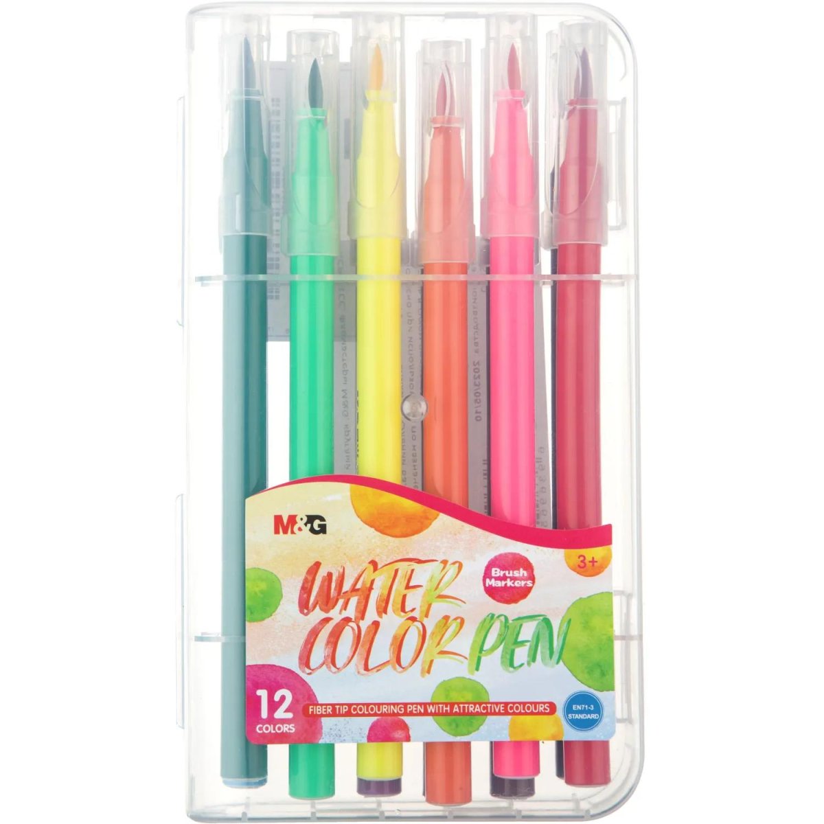 Фломастеры M&G 12 цветов с вентилируемыми колпачками смываемые (ACP901CC)<br> <br> Цветные фломастеры предназначены для рисования на бумаге. Благодаря водной основе они легко смываются с большинства материалов и кожи. Толщина линии письма — 1-5 мм. Вентилируемый колпачок надёжно защищает фломастер от высыхания, а также обеспечивает безопасность при его использовании ребёнком (не перекрывает доступ кислорода в случае попадания в дыхательные пути). Рекомендуются для детей от 3 лет. Поставляются в пластиковом боксе, который делает удобным использование и хранение, незаметно приучая ребёнка поддерживать порядок на рабочем месте. Размер упаковки: 180×100×9 мм.