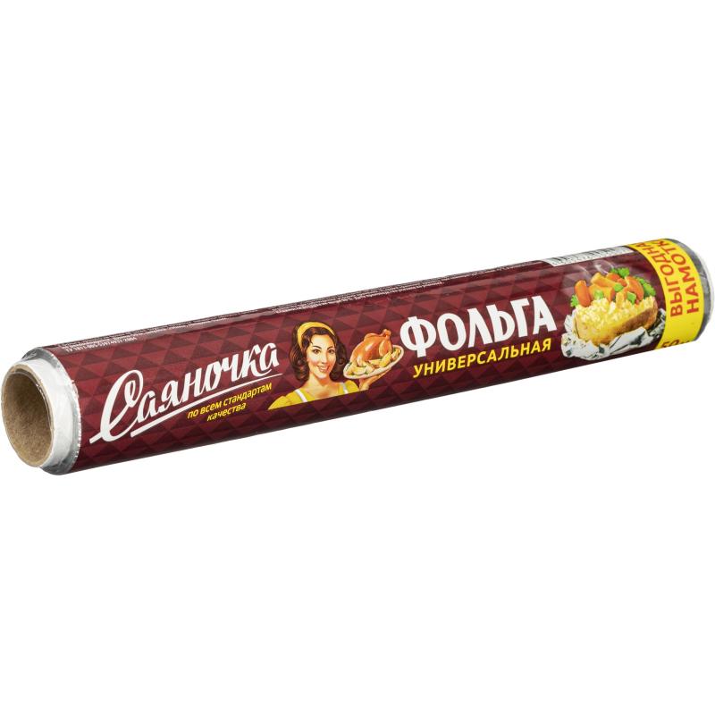 Фольга пищевая алюминиевая Саянская фольга Саяночка 29 см х 50 м (толщина 9 мкм). <br>Фольга подходит для упаковки и хранения. Сохраняет свежесть и аромат, предотвращает высыхание.<br>Толщина: 9 мкм. <br>Длина намотки: 50 м. <br>Ширина: 29 см.