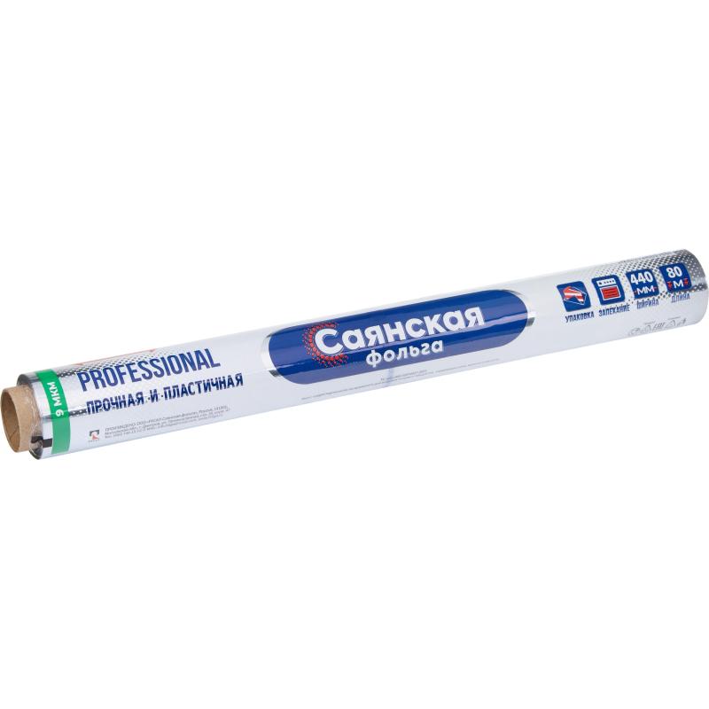 Фольга пищевая алюминиевая Саянская фольга 44 см х 80 м (толщина 9 мкм). <br>Фольга Саянская — лидер на рынке HoReCa. <br>Плотность — 9 мкм. <br>Ширина — 44 см. <br>Длина — 80 м.<br>Для различного применения на профессиональной кухне. Фольга подходит для упаковки, хранения и транспортировки продуктов. Сохраняет свежесть и аромат, предотвращает высыхание.