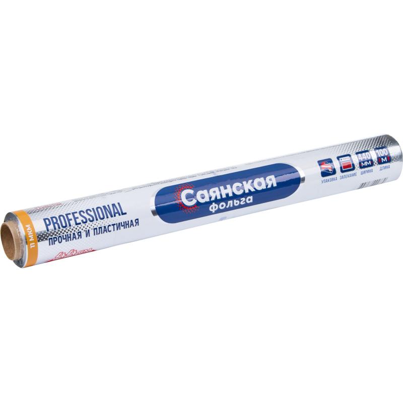 Фольга пищевая алюминиевая Саянская фольга 44 см х 100 м (толщина 11 мкм). <br>Фольга Саянская — лидер на рынке HoReCa. <br>Плотность — 11 мкм. <br>Ширина — 44 см. <br>Длина — 100 м.<br>Для различного применения на профессиональной кухне. Фольга подходит для упаковки, хранения и транспортировки продуктов. Сохраняет свежесть и аромат, предотвращает высыхание.