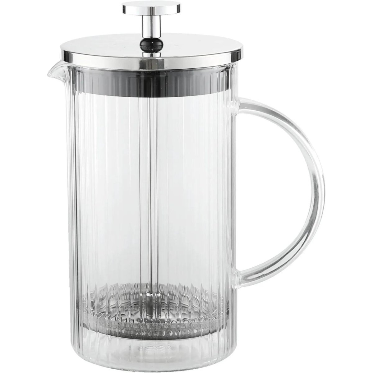 Френч-пресс Poa сделан из термостойкого силикатного стекла и высококачественной нержавеющей стали 18/10. <br>Форма края носика препятствует образованию подтёков.<br>Френс-пресс имеет удобную стеклянную ручку. <br>Усовершенствованный пресс-механизм: навитая пружина способствует более плотному прилеганию краёв фильтра к стенкам колбы и предохраняет его от деформации. Оптимальный размер ячеек фильтра обеспечивает идеальную фильтрацию напитка. <br>Благодаря теплоизоляционным свойствам устойчивое основание защищает поверхность от повреждений. <br>Можно мыть в посудомоечной машине при температуре не выше 65 градусов. Для сохранения наилучшего внешнего вида френч-пресса рекомендуется ручная мойка. <br>Объём: 1000 мл. <br>Размер: 16×10×20.6 см. <br>Упаковка: картонная коробка.