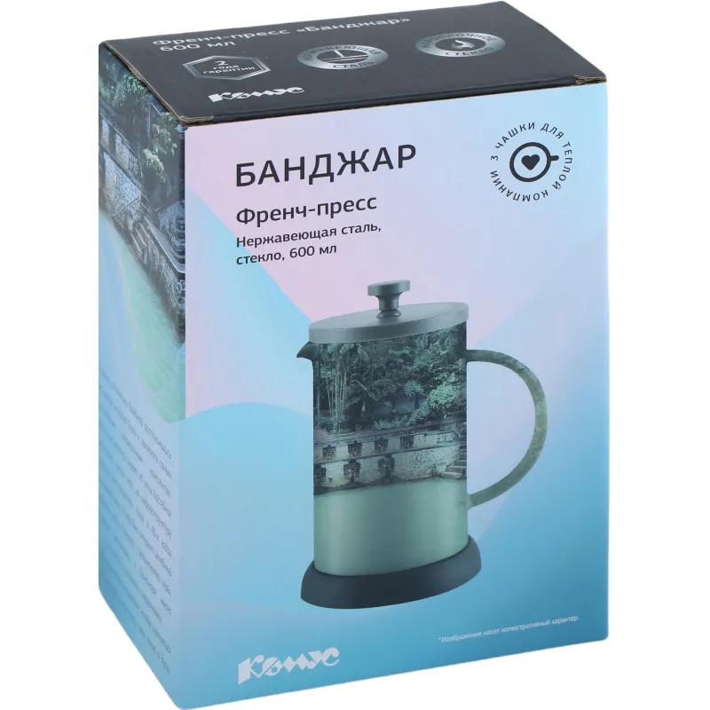Френч-пресс сделан из термостойкого боросиликатного стекла, высококачественной нержавеющей стали 18/10 и пищевого пластика. <br>Утолщённый ободок колбы повышает прочность и продлевает срок службы изделия. <br>Форма края носика препятствует образованию подтёков. <br>Удобная не нагревающаяся бакелитовая ручка. <br>Усовершенствованный пресс-механизм: навитая пружина способствует более плотному прилеганию краёв фильтра к стенкам колбы и предохраняет его от деформации. <br>Оптимальный размер ячеек фильтра обеспечивает идеальную фильтрацию напитка. <br>Благодаря теплоизоляционным свойствам устойчивое основание защищает поверхность от повреждений. <br>Можно мыть в посудомоечной машине при температуре не выше 65 градусов. Для сохранения наилучшего внешнего вида френч-пресса рекомендуется ручная мойка. <br>Размер: 13.5×10×20 см. <br>Объём: 600 мл. <br>Тип упаковки: картонная коробка. <br>Избегайте резких перепадов температур: не наливайте кипяток в холодный стеклянный чайник и не охлаждайте горячий холодной водой. Резкие перепады температур могут привести к повреждению изделия. Нельзя ставить горячий чайник на холодные поверхности и доливать холодную воду сразу после кипячения. Перед заливкой кипятка прогрейте чайник теплой водой.