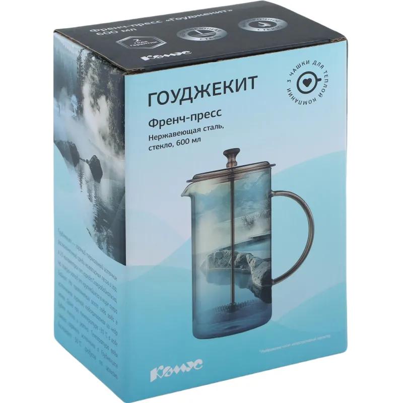 Френч-пресс сделан из термостойкого боросиликатного стекла, высококачественной нержавеющей стали 18/10 и пищевого пластика. <br>Утолщённый ободок колбы повышает прочность и продлевает срок службы изделия. <br>Форма края носика препятствует образованию подтёков. <br>Удобная не нагревающаяся бакелитовая ручка. <br>Усовершенствованный пресс-механизм: навитая пружина способствует более плотному прилеганию краёв фильтра к стенкам колбы и предохраняет его от деформации. <br>Оптимальный размер ячеек фильтра обеспечивает идеальную фильтрацию напитка. <br>Благодаря теплоизоляционным свойствам устойчивое основание защищает поверхность от повреждений. <br>Можно мыть в посудомоечной машине при температуре не выше 65 градусов. Для сохранения наилучшего внешнего вида френч-пресса рекомендуется ручная мойка. <br>Размер: 13.5×10×20 см. <br>Объём: 600 мл. <br>Тип упаковки: картонная коробка. <br>Избегайте резких перепадов температур: не наливайте кипяток в холодный стеклянный чайник и не охлаждайте горячий холодной водой. Резкие перепады температур могут привести к повреждению изделия. Нельзя ставить горячий чайник на холодные поверхности и доливать холодную воду сразу после кипячения. Перед заливкой кипятка прогрейте чайник теплой водой.
