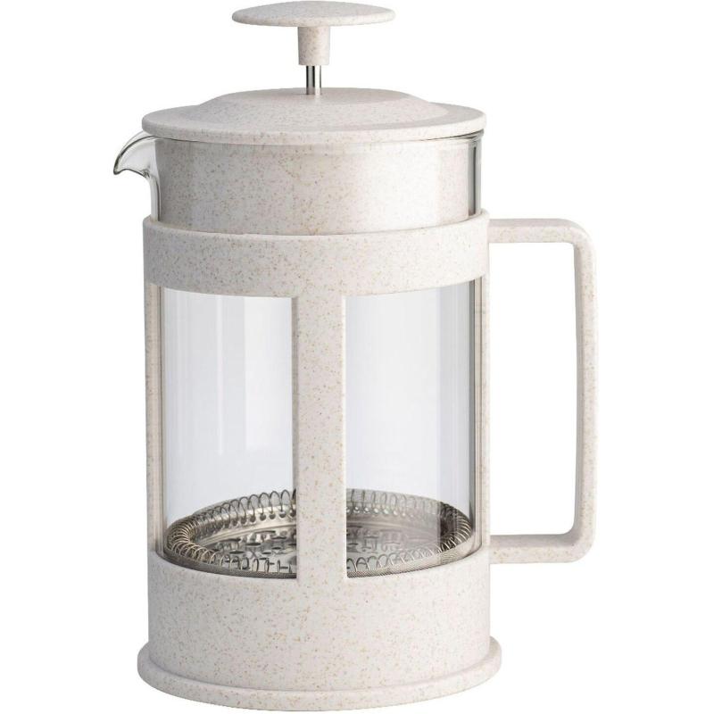 Френч-пресс Lara 600 мл (LR06-50-600). <br>Практичный и стильный дизайн френч-пресса Lara LR06-50-600 порадует за чаепитием не только вас, но и ваших гостей. Корпус изготовлен из инновационного экологически чистого материала: натуральных волокон пшеницы, крахмала и пищевого полипропилена. Безопасен для здоровья и окружающей среды, гипоаллергенен, не портит вкус напитка, без неприятного запаха, выдерживает высокие температуры, полностью биоразлагаемый. Колба выполнена из термостойкого стекла, устойчивого к резкому перепаду температур. Оригинальный внешний вид изделия украсит интерьер современной кухни. Форма носика идеальна для наливания напитков и препятствует образованию подтеков. Пресс-фильтр из нержавеющей стали с уплотнительным кольцом. Благодаря прозрачным стенкам вы сможете определить крепость заваренного напитка. Кроме того, данная модель оснащена ненагревающейся ручкой, что обеспечивает удобство и безопасность использования. <br>Объем: 600 мл.<br>Высота: 19.3 см. <br>Диаметр: 10 см. <br>Можно мыть в посудомоечной машине.<br>Френч-пресс упакован в подарочную коробку. <br><br>Допустимо отклонение процента белизны в пределах 58%.