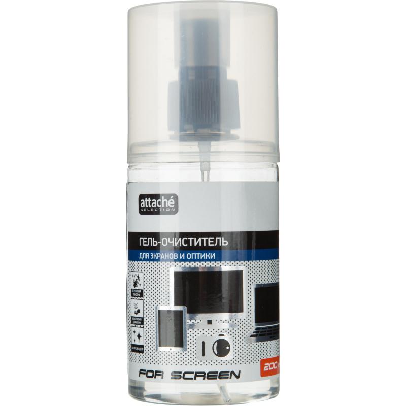 <b>Гель для чистки экранов и оптики Attache Selection 200 мл</b> <br><br>Предназначен для ухода и очистки экранов ноутбуков, мониторов, телевизоров и панелей, смартфонов и других оптических поверхностей от пыли, грязи, отпечатков пальцев и жировых разводов. При распылении гель не растекается, а остается на обрабатываемой поверхности. Не оставляет разводов на обрабатываемой поверхности. Обеспечивает тщательную очистку поверхности и является безопасным в применении.<br>1. Эффективно удаляет пыль, грязь, жирные отпечатки и другие загрязнения. <br>2. Не растекается и не оставляет разводов. <br>3. Не содержит спирта.