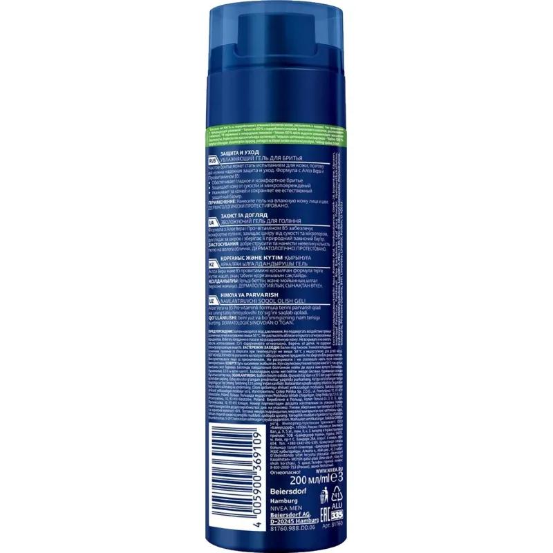 Гель для бритья Nivea Защита и уход 200 мл<br><br>Попробуйте успокаивающий бальзам после бритья для чувствительной кожи от Nivea Men. Мягкая формула без спирта, обогащённая комплексом ромашки, помогает быстро успокоить кожу после бритья: уменьшает покраснение и жжение, кожа выглядит здоровой и ухоженной. Быстро впитывается, не оставляя ощущения липкости. Дерматологически протестировано. Специально для мужчин с чувствительной кожей.<br>Применение: используйте пену или гель для бритья, побрейтесь и умойтесь водой, после чего налейте небольшое количество средства после бритья в ладонь, нанесите на лицо и шею после бритья аккуратными массирующими движениями, избегая области вокруг глаз.<br>— Помогает успокоить кожу после бритья.<br>— С комплексом ромашки.<br>— Уменьшает покраснение и жжение.<br>— Для чувствительной кожи.<br>— Дерматологически протестировано.<br><br>Состав: Aqua, Palmitic Acid, Triethanolamine, Oleth-20, Isopentane, Glycerin, Isopropyl Palmitate, Panthenol, Aloe Barbadensis Leaf Juice Powder, Hydroxyethylcellulose, Hydroxypropyl Methylcellulose, Laureth-2, PEG-14M, PEG-90 Glyceryl Isostearate, Polyisobutene, Isobutane, Piroctone Olamine, BHT, Limonene, Linalool, Parfum, Cl 42053.