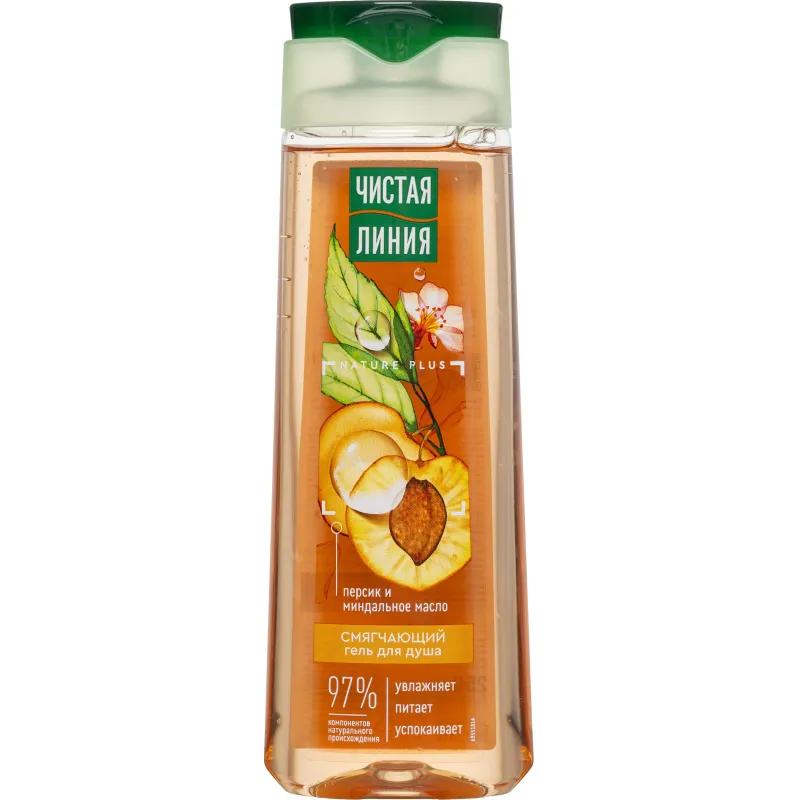 Гель для душа Чистая Линия Смягчающий персик и миндальное масло 250 мл<br><br>Позаботьтесь о красоте своей кожи вместе со смягчающим гелем для душа Чистая Линия. 100% натуральная основа мягко очищает кожу, а формула, состоящая на 97% из компонентов природного происхождения, делает средство безопасным для всей семьи, включая детей от 3 лет.<br><br>Миндальное масло интенсивно питает и увлажняет, а сок персика смягчает и дарит ощущение нежности. На 99% биоразлагаемая формула не содержит мыла и не сушит кожу.<br><br>Дополнительные натуральные компоненты усиливают действие средства:<br>— Экстракт вербены успокаивает и укрепляет кожу.<br>— Экстракт плодов шиповника, богатый витаминами, тонизирует и оказывает общеукрепляющее действие.<br>— Листья шалфея обладают смягчающим эффектом.<br>— Масло льна снимает раздражение и питает кожу.<br><br>Свойства продукта подтверждены тестированием:<br>— 96% респондентов отметили, что гель бережно очищает кожу и придаёт ей мягкость и гладкость.<br>— 91% заявили, что после применения кожа становится шелковистой и нежной.<br><br>Флакон выполнен в новом дизайне и на 100% состоит из переработанного пластика. Объём 250 мл удобен для использования дома и в поездках.<br><br>Состав: Aqua, Sodium Laureth Sulfate, Sodium Chloride, Achillea Millefolium Extract, Actinidia Chinensis (Kiwi) Fruit Juice, Camellia Sinensis Leaf Extract, Chamomilla Recutita (Matricaria) Flower/Leaf Extract, Chamomilla Recutita Flower Extract, Chelidonium Majus Extract, Citrus Aurantifolia (Lime) Fruit Juice, Citrus Aurantium Dulcis (Orange) Juice, Citrus Medica Limonum (Lemon) Fruit Juice, Citrus Nobilis (Mandarin Orange) Fruit Juice, Citrus Paradisi (Grapefruit) Juice, Evernia Furfuracea (Treemoss) Extract, Evernia Prunastri (Oakmoss) Extract, Hypericum Perforatum Flower/Leaf/Stem Extract, Linum Usitatissimum (Linseed) Seed Oil, Musa Paradisica (Banana) Fruit Juice, Prunus Amygdalus Dulcis (Sweet Almond) Oil, Prunus Cerasus (Bitter Cherry) Juice, Prunus Persica (Peach) Juice, Pyrus Malus (Apple) Juice, Rosa Canina Fruit Extract, Salvia Officinalis (Sage) Leaf Extract, Urtica Dioica Leaf Extract, Verbena Officinalis Leaf Extract, Vitis Vinifera (Grape) Juice, Benzophenone-4, Citric Acid, Cocamide DEA, Cocamidopropyl Betaine, Disodium EDTA, Disodium Laureth Sulfosuccinate, Glycerin, Inulin, Parfum, Phenoxyethanol, Propylene Glycol, Sodium Benzoate, Sodium Phytate, CI 14720, CI 19140, CI 42090.