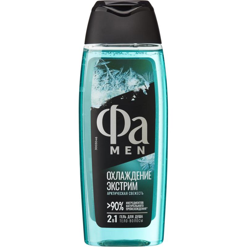 Гель для душа Фа Men Охлаждение Экстрим 450 мл<br><br>Пробудите свою внутреннюю силу вместе с бодрящим ароматом эвкалипта. Гель эффективно очищает тело и волосы, помогает защитить кожу от пересушивания и разработан специально для мужчин.<br><br>— Арктическая свежесть<br>— Более 90% ингредиентов натурального происхождения<br>— Формат 2 в 1: гель для тела и волос<br>— Веган-формула без ингредиентов животного происхождения<br><br>Состав: Aqua (Water, Eau), Sodium Laureth Sulfate, Cocamidopropyl Betaine, Sodium Chloride, Parfum (Fragrance), Propylene Glycol, Glyceryl Laurate, PEG-40 Hydrogenated Castor Oil, PEG-7 Glyceryl Cocoate, PEG-55 Propylene Glycol Oleate, Laureth-2, Benzophenone-4, Tetrasodium EDTA, Menthol, Sodium Hydroxide, Citric Acid, Sodium Benzoate, Sodium Salicylate, Hexyl Cinnamal, Linalool, Coumarin, Limonene, Citral, CI 42090 (Blue 1), CI 19140 (Yellow 5).