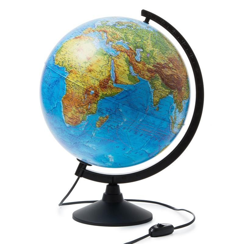 Глобус Globen Классик физический 32 см с подсветкой<br> <br> Глобус — идеальное учебное пособие для изучения географии в школе и дома. Сфера изготовлена из пластика. Диаметр сферы 32 см. Устойчивая настольная подставка из пластика. Карта максимально подробная для данного диаметра глобуса. Линия экватора выпуклая для тактильного восприятия. Изображение карты соответствует принятым мировым картографическим стандартам условного обозначения ландшафта и стран. Наличие подсветки позволяет использовать глобус как ночник в вечернее и ночное время. Размер глобуса: 44×35 см. Питание от сети, в комплекте поставляется шнур с выключателем.