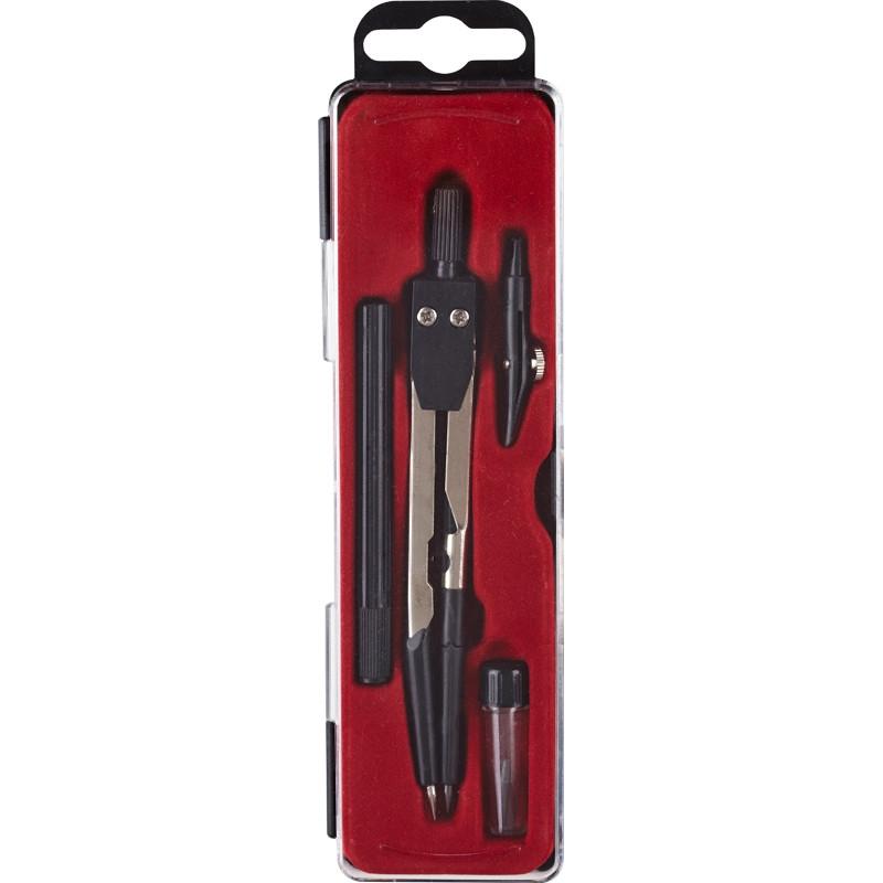Готовальня Attache предназначена для школьников средних и старших классов. Набор включает 4 предмета: циркуль из металлического сплава с резиновыми ножками (длина 120 мм), запасной грифель, рейсфедерную вставку и держатель. Циркуль оснащён фиксирующим болтом, что обеспечивает надёжное крепление подвижных частей. Набор упакован в пластиковый пенал, который защищает содержимое от повреждений. Упаковка также оснащена европодвесом для удобного размещения товара. Цвет корпуса — серебристый.