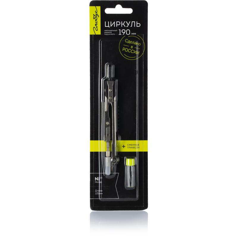 Готовальня Глобус предназначена для выполнения точных геометрических построений в старших классах, колледжах и вузах. Набор подходит для студентов, учащихся технических направлений и всех, кто работает с чертежами и схемами. В комплект входит циркуль длиной 125 мм с несгибаемой штангой и запасной грифель. Корпус циркуля выполнен из прочного стального сплава с никелированным покрытием и латунной вставкой под карандаш. Благодаря надёжной конструкции циркуль устойчив к износу и обеспечивает точность линий. В набор также входит пенал с запасным грифелем. Готовальня упакована в блистер с европодвесом, что позволяет удобно хранить и размещать товар. Корпус изделия серебристого цвета.