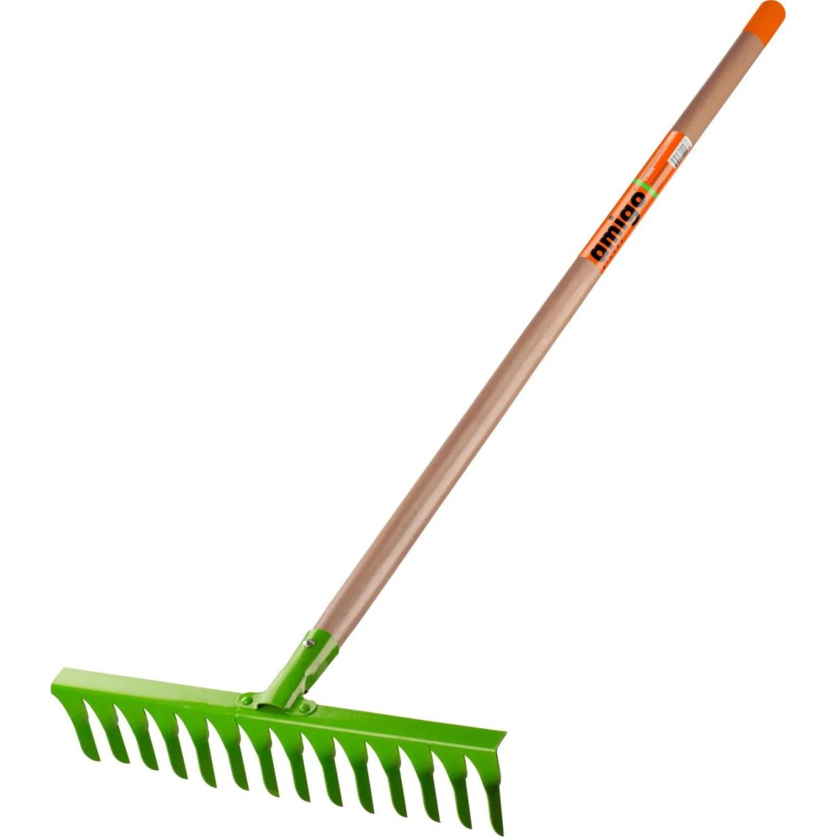 Грабли витые Amigo grande — практичный садовый инструмент с 14 стальными зубьями, оснащёнными антикоррозийным покрытием толщиной 2.1 мм, предназначены для эффективной аэрации почвы и удаления сорняков. Благодаря оптимальному весу и прочному гладкому деревянному черенку с защитной обработкой грабли обеспечивают комфортное разравнивание почвы при выполнении садовых работ.