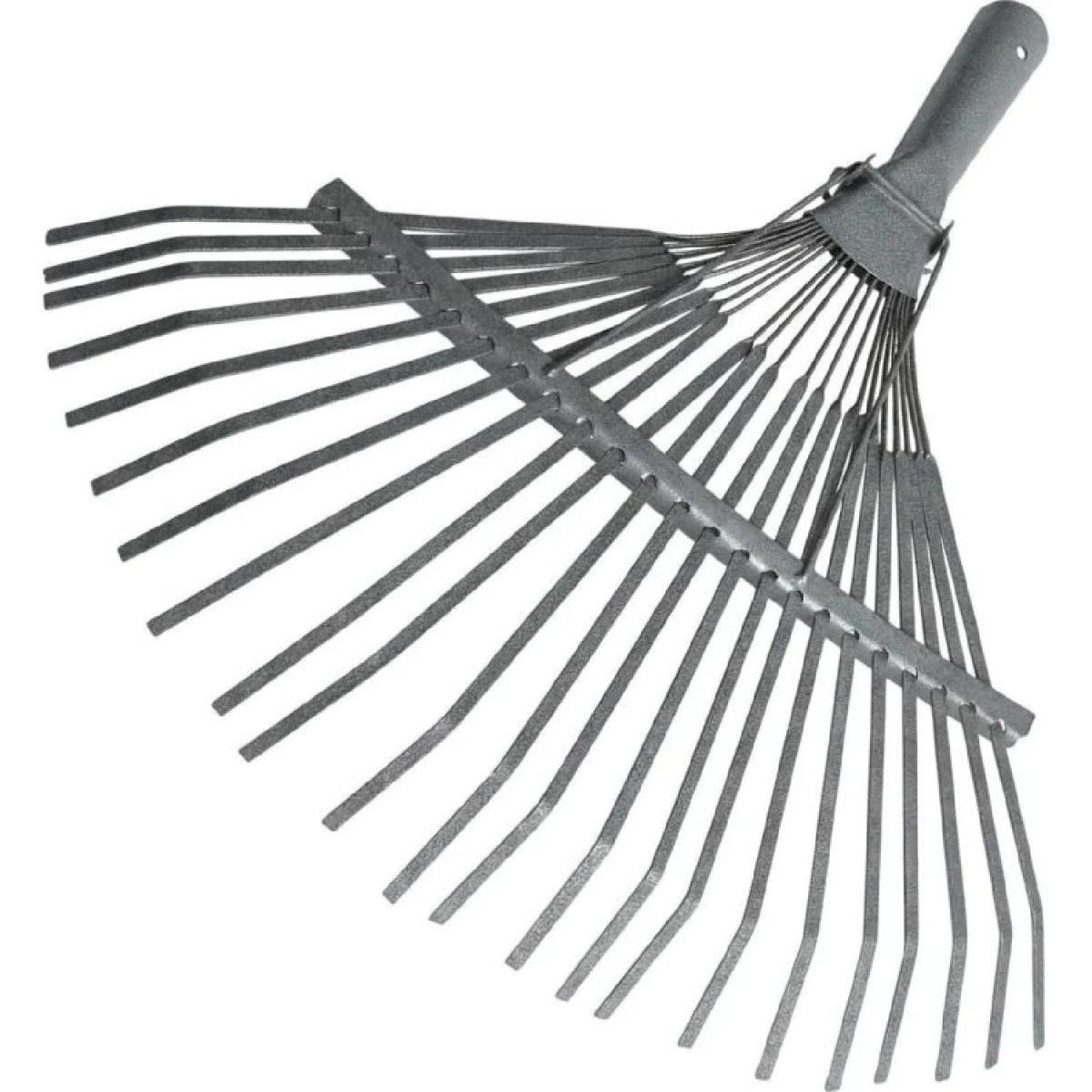 Грабли веерные предназначены для садово-огородных работ: уборки листвы, скошенной травы и мелкого растительного мусора, а также для аккуратного вычёсывания поверхности почвы. Рабочая часть изготовлена из стали, устойчива к деформации и сохраняет форму при эксплуатации.<br>Инструмент оснащён 22 зубьями веерной формы, которые равномерно распределяют нагрузку и позволяют обрабатывать участки с мягким покрытием без повреждения поверхности. Ширина рабочей части составляет 39 см, длина — 27 см. Общая длина инвентаря — 35 см. Диаметр тулейки — 30 мм, крепление рукоятки предусмотрено под саморезы. Грабли произведены в России.<br><br>Рукоятка/черенок в комплект поставки не входит и приобретается отдельно.
