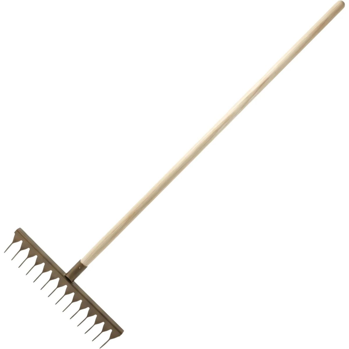 Грабли витые предназначены для садово-огородных работ: разравнивания почвы, уборки листвы, травы и других растительных остатков. Рабочая часть изготовлена из стали, выдерживает механические нагрузки и сохраняет форму при регулярном использовании.<br>Инструмент оснащён 14 витыми зубьями, которые эффективно захватывают мусор и рыхлят верхний слой почвы. Ширина рабочей части составляет 43.5 см, длина — 9.5 см. Общая длина инвентаря — 129.5 см, что позволяет работать без лишней нагрузки на спину. Черенок выполнен из дерева. Диаметр тулейки — 30 мм, крепление рукоятки предусмотрено под саморезы. Грабли произведены в России.