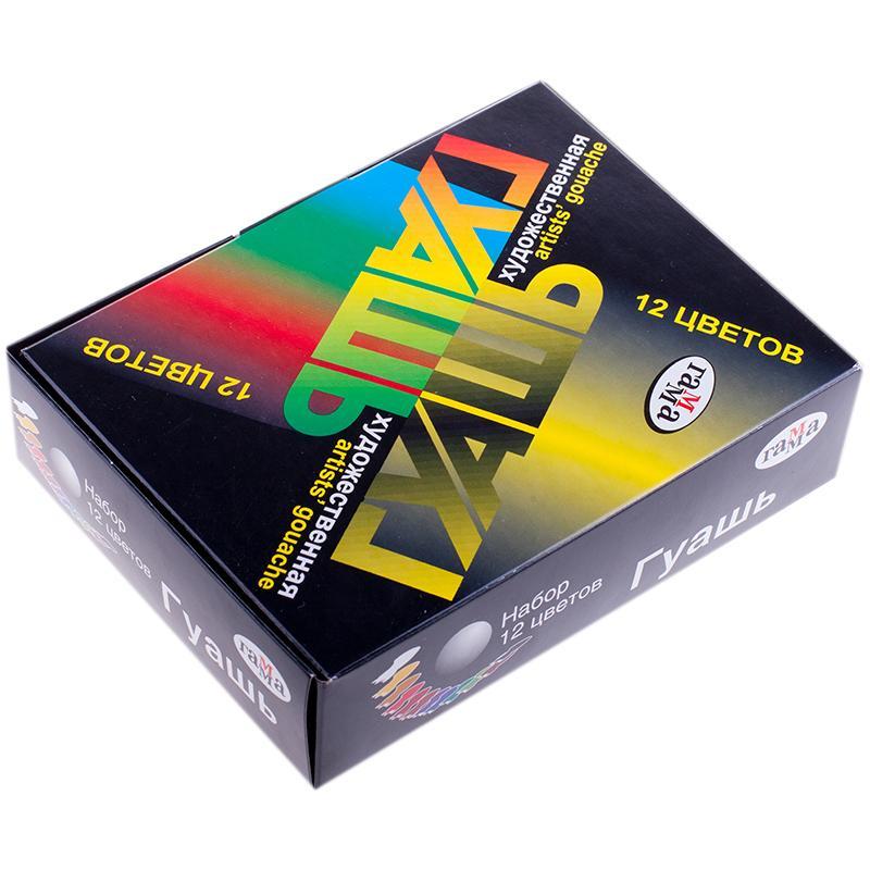 Гуашь Гамма 12 цветов по 20 мл<br /> <br /> Профессиональные краски на водной основе, обладают высокой светостойкостью, прекрасной разносимостью и укрывистостью. Гуашь подходит для профессиональных художников и учащихся художественных училищ. В состав входят высококачественные пигменты, поэтому цвета остаются яркими и насыщенными. Гуашь в прозрачных баночках с навинчивающейся крышкой 20 мл. <br /> Срок годности: 12 мес. <br /> Набор составлен из 12 цветов гуаши: белая титановая, желтая светлая, алая, зеленая, синяя спектральная, черная, охра золотистая, изумрудно-зеленая светлая, фиолетовая темная, красная, железо-окисная, марс коричневый темный, краплак красный. <br /> Размер упаковки: 11.5×15.5×4 см.