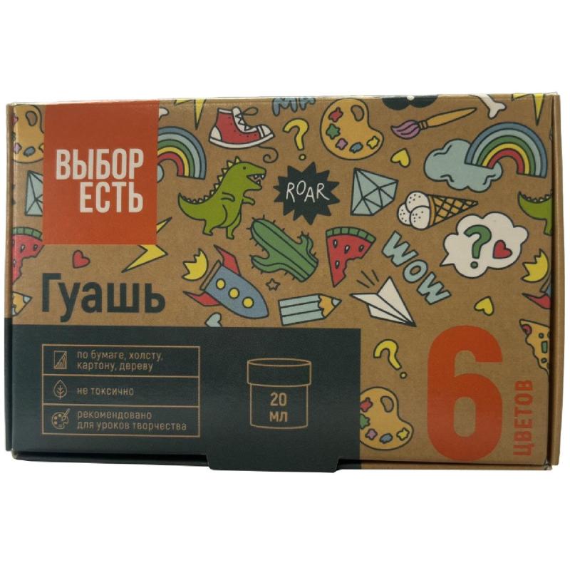 Гуашь Выбор есть 6 цветов по 120 мл<br><br>Предназначена для художественных и оформительских работ, прикладного искусства и детского творчества. Гуашь изготовлена на основе органических пигментов, минеральных наполнителей и натуральных пластификаторов. Обладает улучшенной укрывистостью. Цвета легко смешиваются. При расслоении перемешать, при высыхании развести водой. Гуашь безопасна при использовании по назначению.