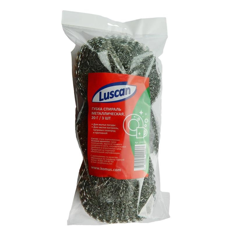 Губка-мочалка для уборки Luscan металлическая 11×11 см 20 г (3 штуки в упаковке)<br /> <br /> Губка Luscan предназначена для мытья посуды — для эффективной очистки кастрюль, чугунных сковород и противней. Благодаря материалу изготовления — оцинкованной стали — изделие имеет длительной срок службы, долгое время не теряет свои эксплуатационные свойства. После использования губки рекомендуется её тщательно промыть и просушить. Условия хранения: сухое помещение, вдали от прямого солнечного света, нагревательных приборов и агрессивных сред.<br /> <br /> Размер губки: 11×11×2.5 см.<br /> <br /> Поставляется упаковками по 3 штуки.