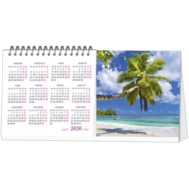 Календарь-домик настольный Attache — настольный перекидной календарь-домик, форматом 190×100 мм. Блок изготовлен из офсетной бумаги плотностью 80 г, размер блока 105×95 мм, двухкрасочная печать. Подставка изготовлена из мелованного картона 300 г/кв.м, полноцветная печать. Крепление: металлический гребень (спираль). Дополнительно: отдельные листы с календарём на два года (2025 и 2026).