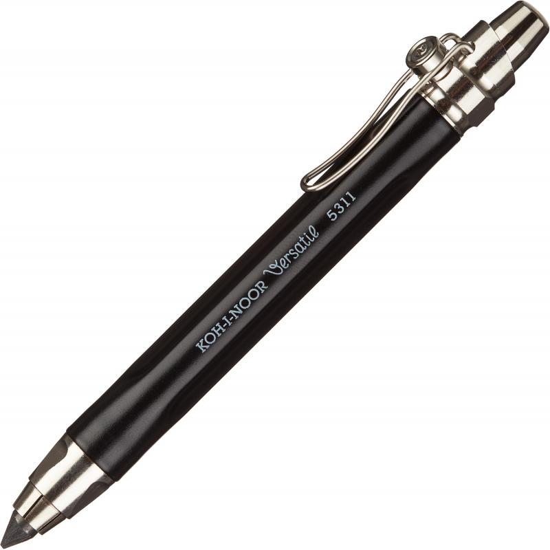 <p>Карандаш механический <nobr>Koh-I-Noor</nobr> 5311 с толщиной линии письма от 3 до 5,6 мм. Корпус карандаша изготовлен из металла и пластика и имеет <nobr>серебристо-черный</nobr> цвет. Обладает цанговым зажимом и углублениями на корпусе для удобного хвата. В конструкции механического карандаша предусмотрена точилка для стержня, которая располагается в кнопке выдвигающего механизма. Кроме обычных грифелей можно применять грифели из художественного мела, угля и сепии. <nobr>Страна-производитель</nobr> — Чехия. Подходит сменный стержень по арт. 611094.</p>