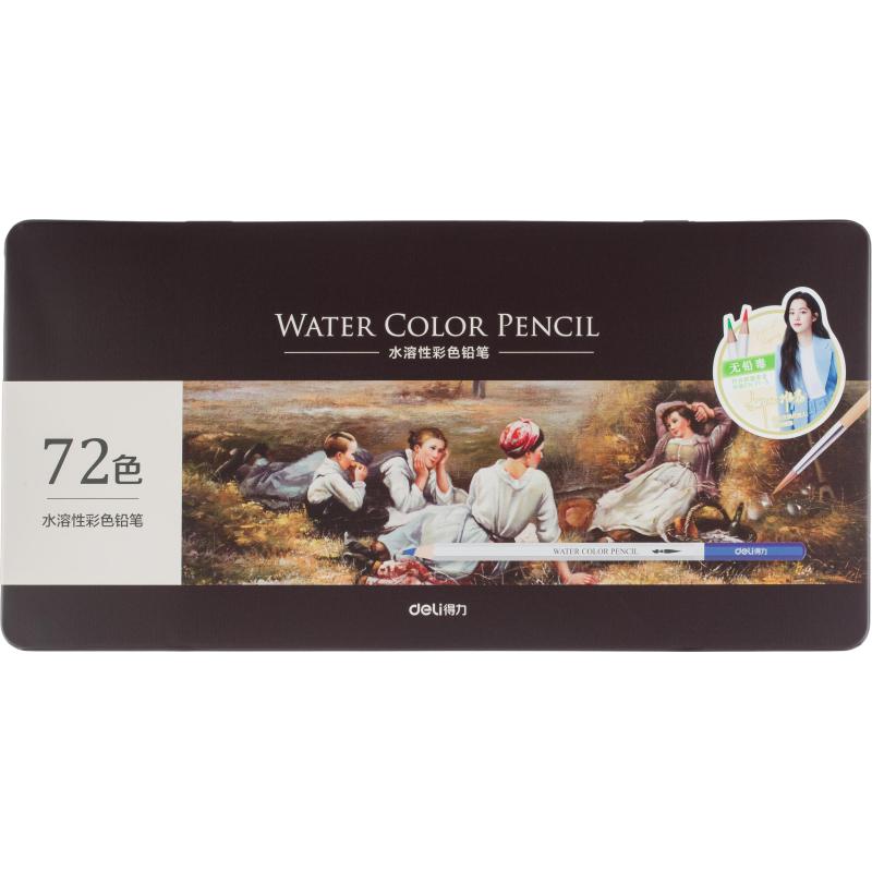 Цветные акварельные карандаши Deli шестигранной формы изготовлены из размягчённой высококачественной липы, поэтому они крепкие и при этом легко затачиваются. Водорастворимые грифели диаметром 4 мм можно использовать для рисования кистью. Карандаши мягко скользят по бумаге, цвета отлично смешиваются. Цвета в наборе: белый, жёлтый (4 шт.), лимонный, песочный (4 шт.), пастельный, лавандовый, фиолетовый, виноградный, ярко-жёлтый, оранжевый (2 шт.), светло-оранжевый, малиновый, красный, алый (4 шт.), бордовый (2 шт.), розовый, светло-розовый, тёмно-розовый (4 шт.), фиолетовый, виноградный, синий (4 шт.), голубой (2 шт.), небесный, лазурный (2 шт.), ярко-синий (2 шт.), тёмно-синий, ярко-синий, зелёный (4 шт.), мятный, зелёный (2 шт.), еловый (2 шт.), тёмно-зелёный (4 шт.), песочный, коричневый (2 шт.), кирпичный (2 шт.), светло-коричневый, шоколадный, чёрный, серый, серебряный, тёмно-серый, светло-серый. В комплекте есть кисточка, с помощью которой вы сможете размыть полученный рисунок для достижения акварельного эффекта. Прочная металлическая коробка обеспечивает надёжное хранение.