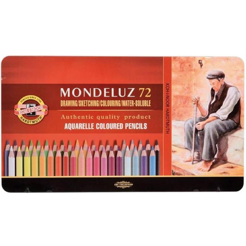 Карандаши акварельные Koh-i-Noor Mondeluz Old Man шестигранные 72 цвета в наборе<br><br>Предназначены для художников, колористов, иллюстраторов и любителей. Обладают хорошей светостойкостью, смешиваемость до 5 слоёв. Прекрасно размываются водой. В комплекте: белый, жёлтый (4 шт.), лимонный, песочный (4 шт.), пастельный, лавандовый, фиолетовый (2 шт.), виноградный (2 шт.), ярко-жёлтый, оранжевый (2 шт.), светло-оранжевый, малиновый, красный, алый (4 шт.), бордовый (2 шт.), розовый, светло-розовый, тёмно-розовый (4 шт.), синий (4 шт.), голубой (2 шт.), небесный, лазурный (2 шт.), ярко-синий (3 шт.), тёмно-синий, зелёный (6 шт.), мятный, еловый (2 шт.), тёмно-зелёный (4 шт.), песочный, коричневый (2 шт.), кирпичный (2 шт.), светло-коричневый, шоколадный, чёрный, серый, серебряный, тёмно-серый, светло-серый. Мягкие, яркие профессиональные карандаши поставляются в металлическом пенале; заточены.
