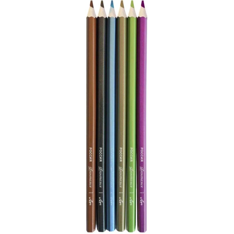 <br><br>Карандаши цветные Луч Фантазия 6 карандашей 6 цветов шестигранные (металлические)<br><br>Цветные карандаши серии «Фантазия» обладают эффектом металлика и предназначены для создания ярких декоративных рисунков. В набор входят 6 карандашей с насыщенными цветами и мягким грифелем степени 4М. Благодаря качественной проклейке стержня и корпуса карандаши устойчивы к поломкам при падении и хорошо переносят нажим без крошения. Шестигранный корпус диаметром 7 мм удобно лежит в руке, а покрытие из 18 слоёв лака делает поверхность гладкой и комфортной в работе. Карандаши предварительно заточены и легко поддаются повторной заточке обычной точилкой. Изготовлены из мягкой древесины, соответствуют типоразмерам и безопасны для детей. Упакованы в картонную коробку с прозрачным окошком и европодвесом.