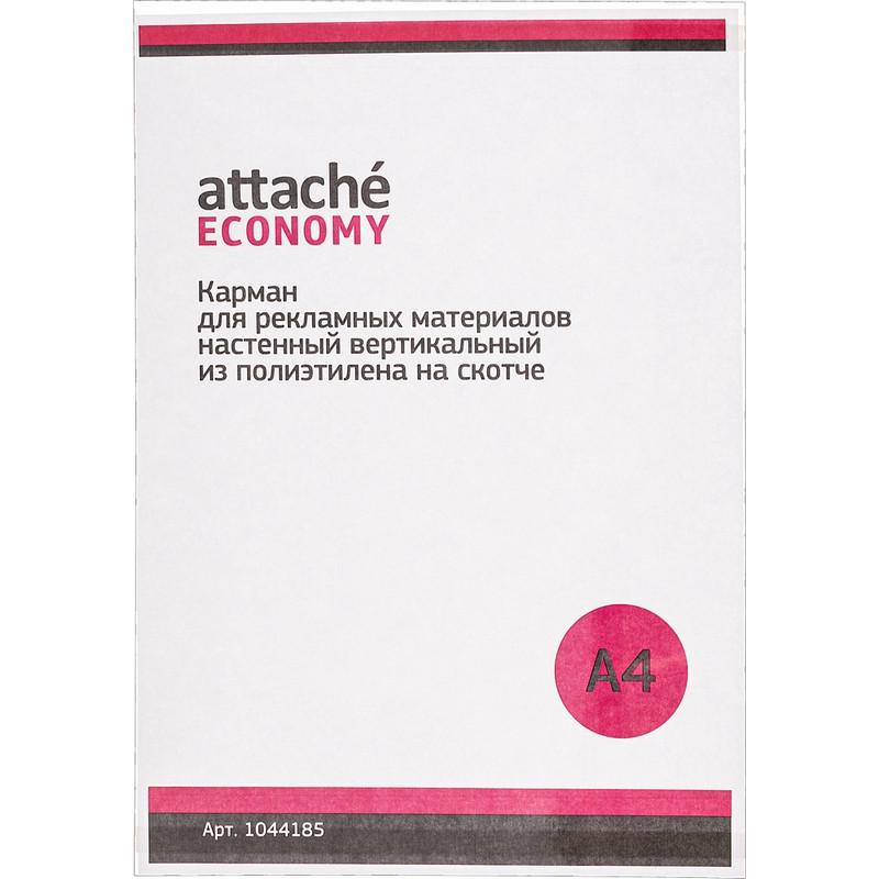 Карман настенный A4 вертикальный (297×210 мм) из полиэтилена на скотче Attache (Attache Economy) (5 штук в упаковке)<br><br>Держатель для информации Attache Economy формата А4. Вертикальный карман со вспененным скотчем, с двумя загибами. Фиксируется на двух полосках скотча, размещенных на тыльной стороне кармана. Материал — полиэтилен. <br><br>В рамках ребрендинга производится перевод данного артикула с ТМ Attache Economy на ТМ Attache с сохранением всех потребительских характеристик товара. На переходный период допускается поставка данной продукции в двух вариантах дизайна.